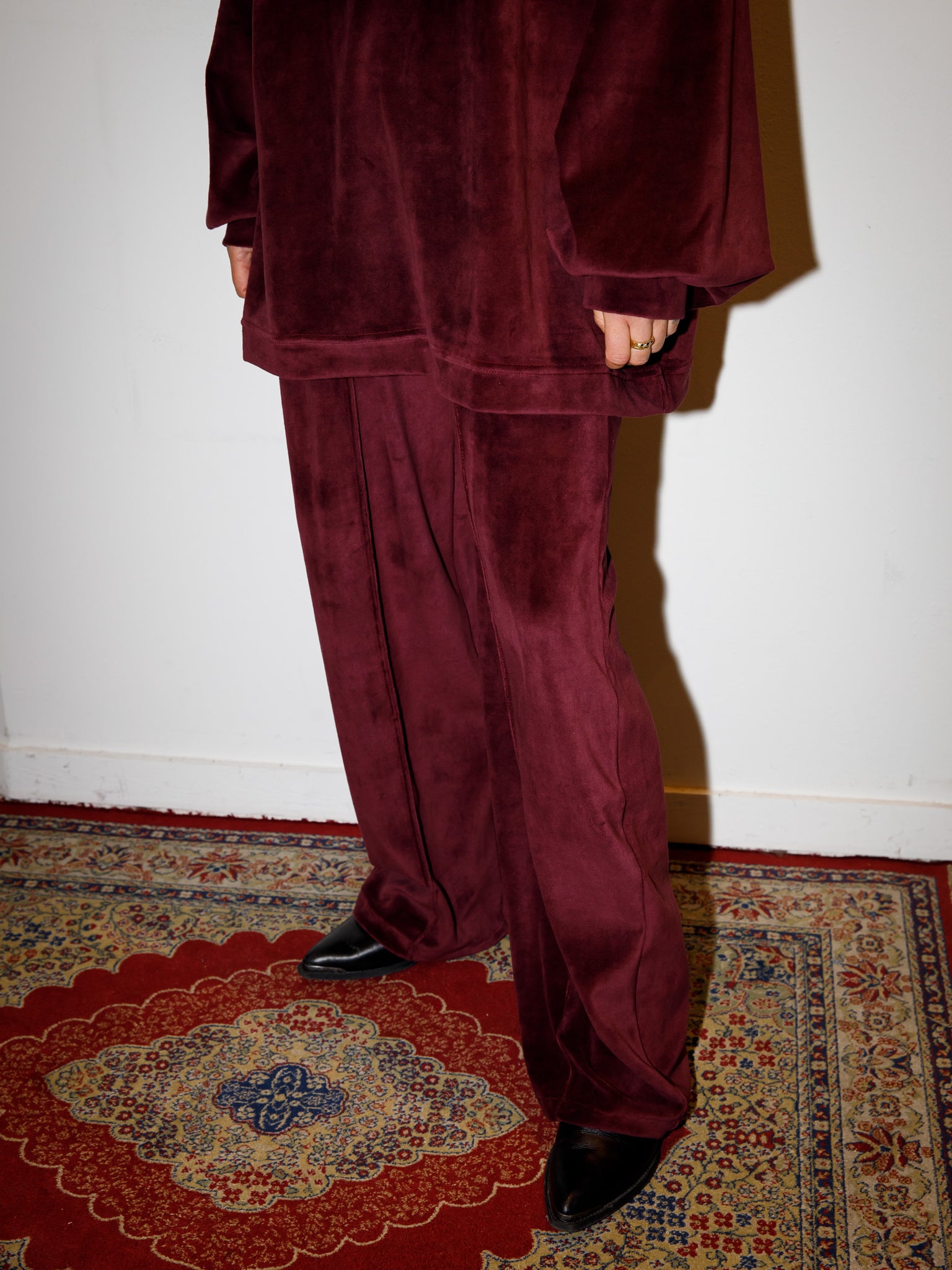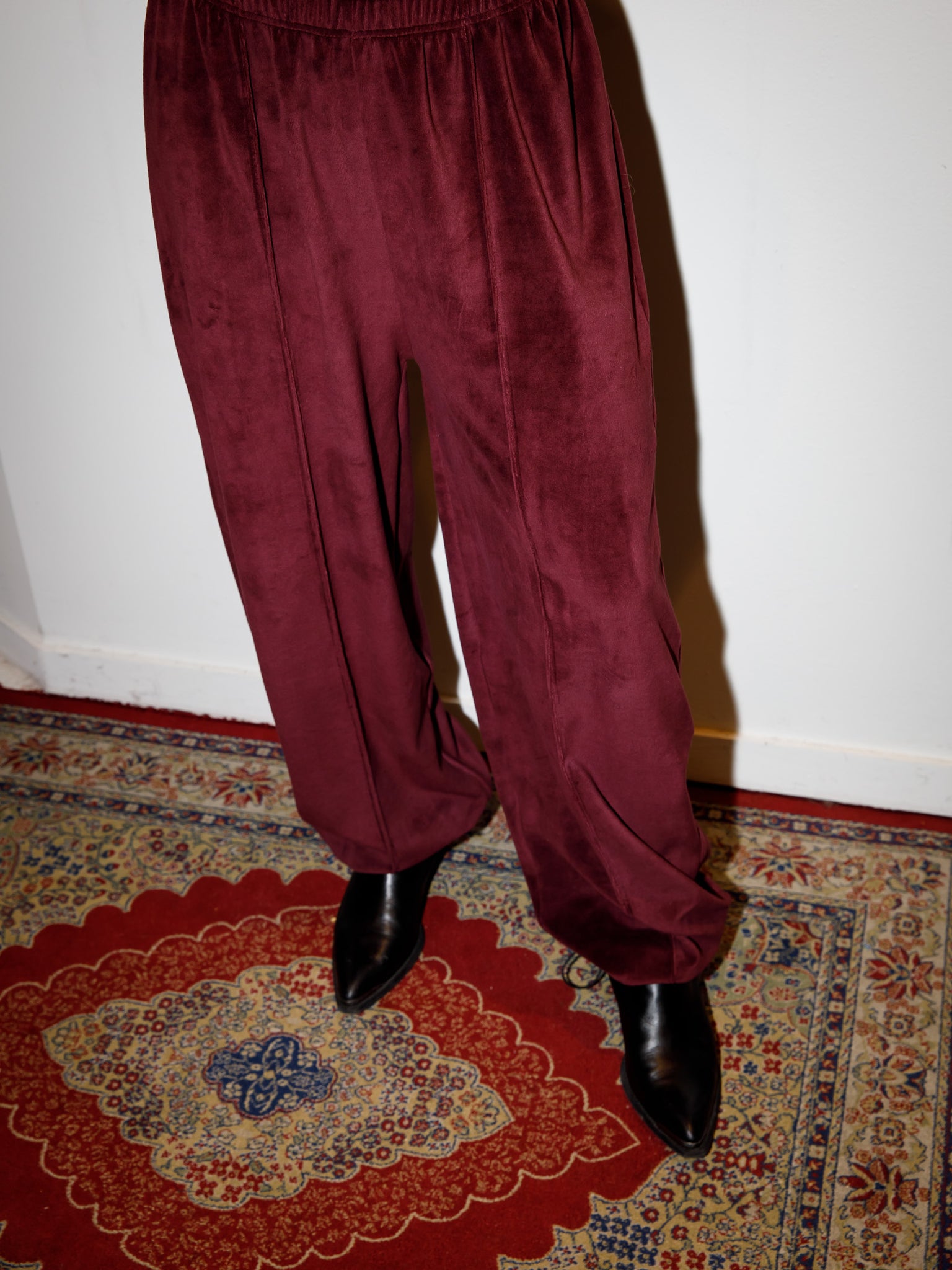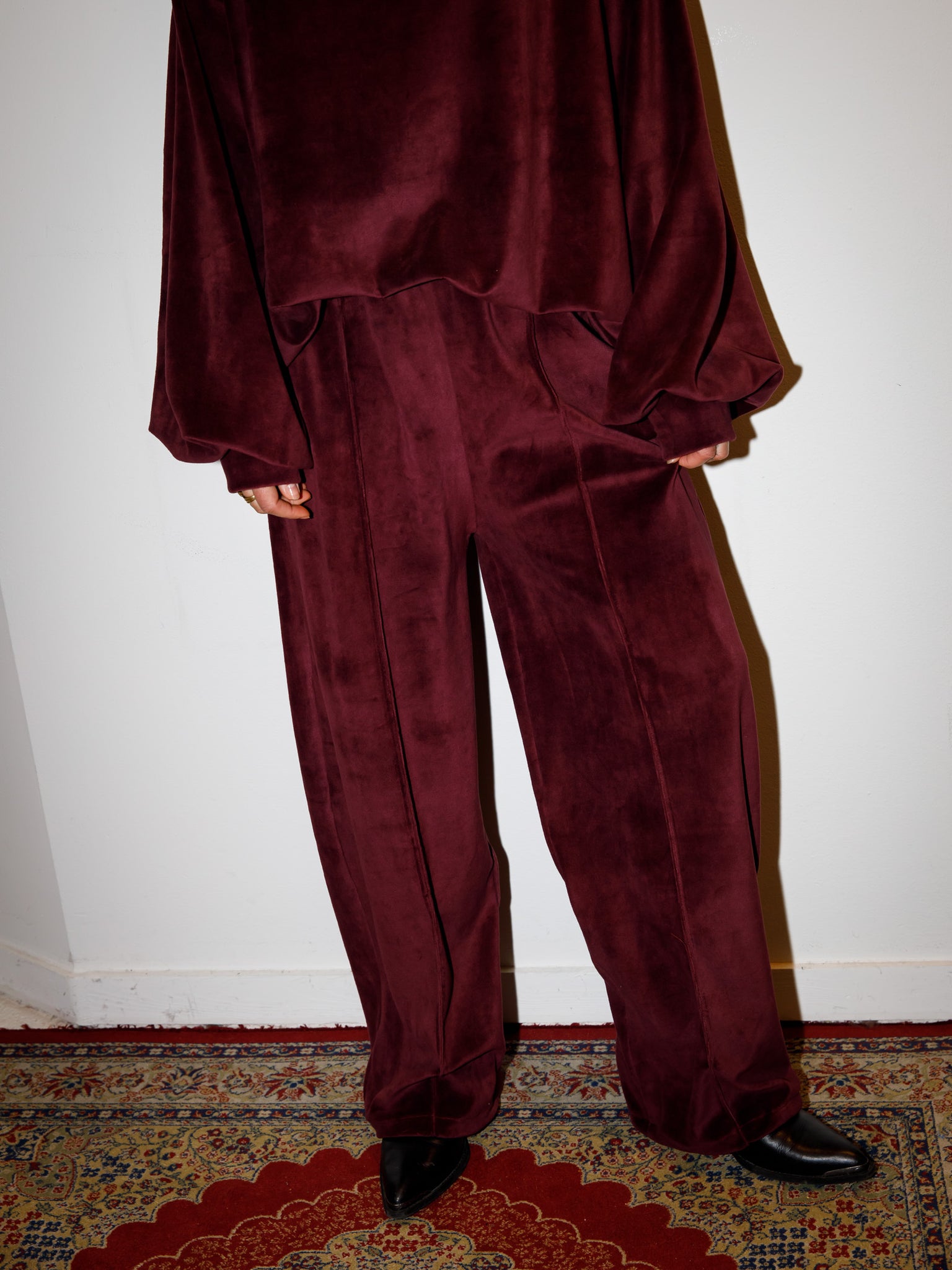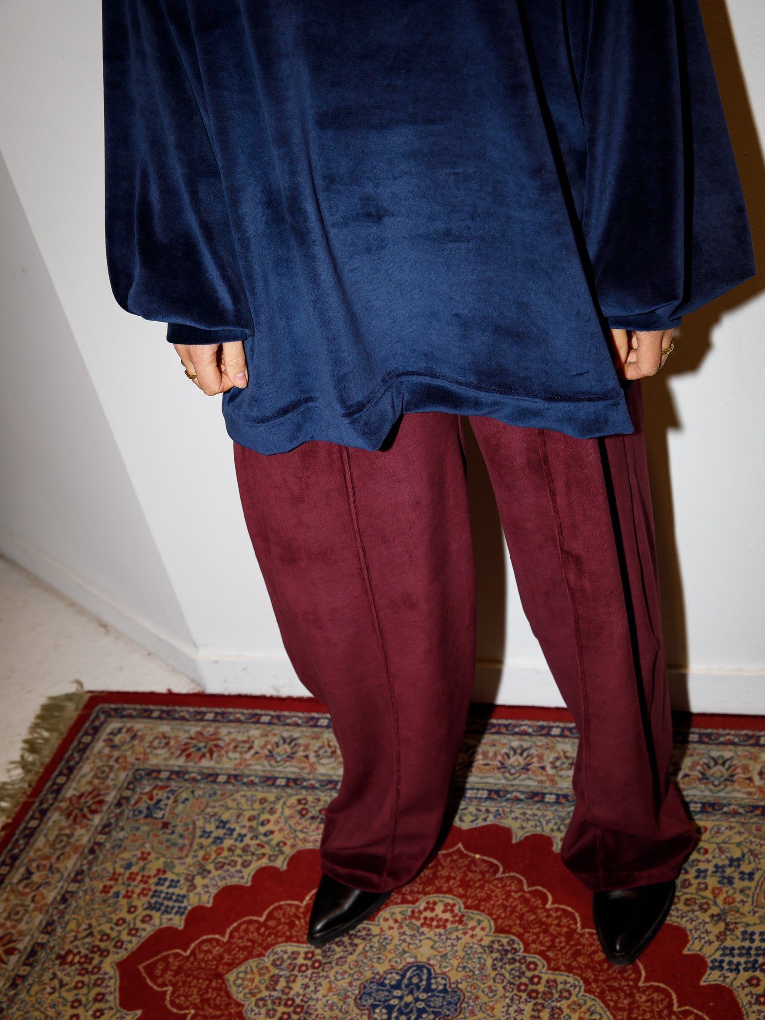 De Cleo pants is een lange broek met soepel elastiek en valt op de heupen (let op, dit is geen taille broek). De broek heeft een rechte pijp en heeft aan de onderkant een elastiek wat je aan kan trekken. Hierdoor kan je de broek op 2 manieren dragen: recht of met aangetrokken pijp voor een pof effect. Op het midden van de voorkant van de pijp zit een naad. De maten vallen normaal tot oversized, dus draag je normaliter maat 40/42 dan kan je nu voor maat L/XL kiezen. Wanneer je langer bent dan 1.75m zal de broek naar schatting niet lang genoeg zijn.