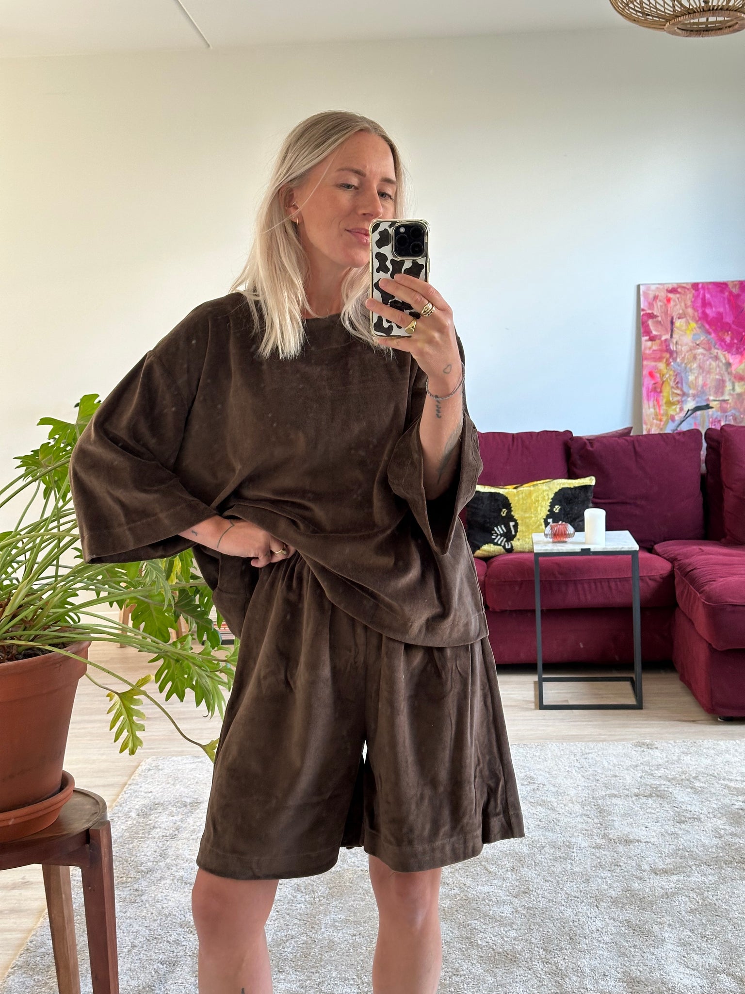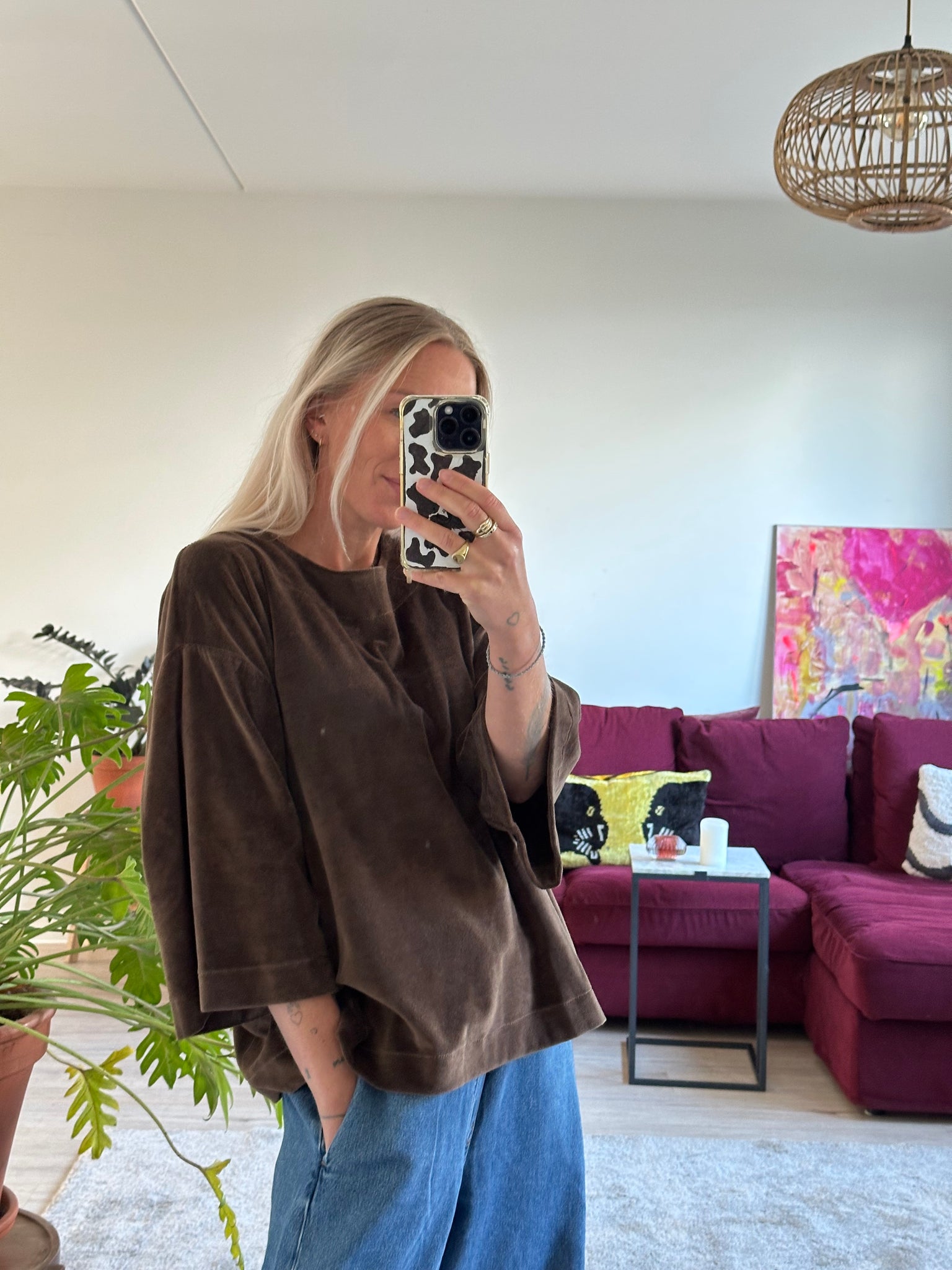 Lenny is een t-shirt met een medium lengte (afhankelijk van lengte en postuur) en is gemaakt van zacht velours met half lange mouwen.