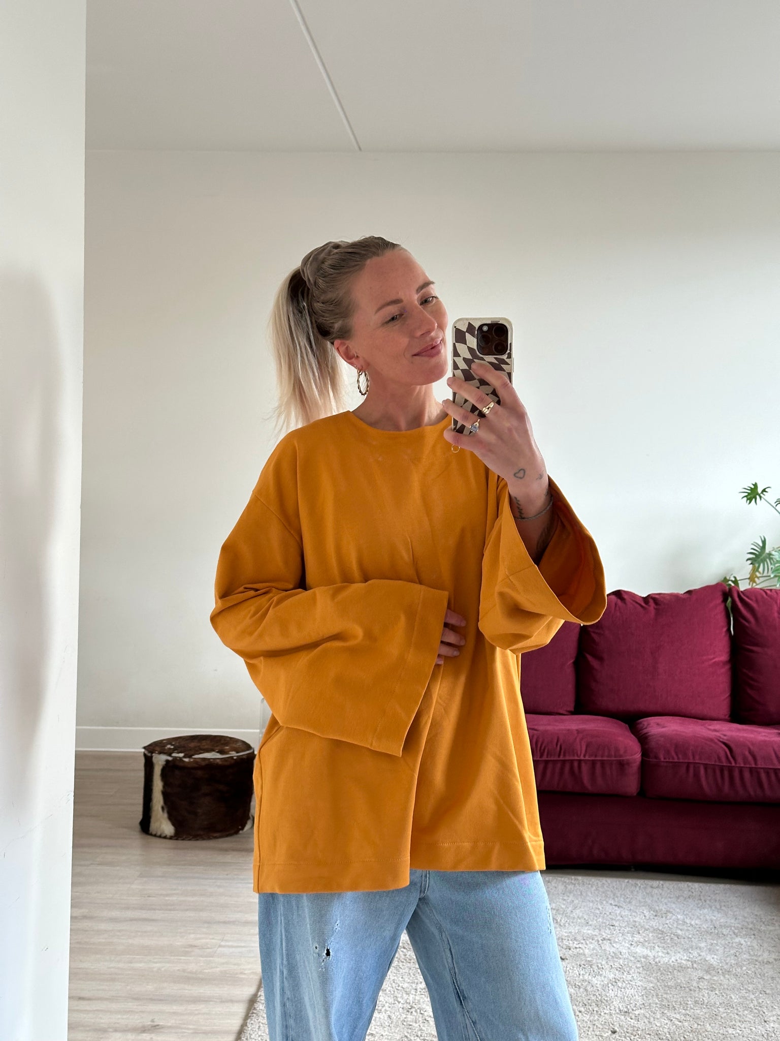 Joe is een mid lange sweater met lange, wijde mouwen.