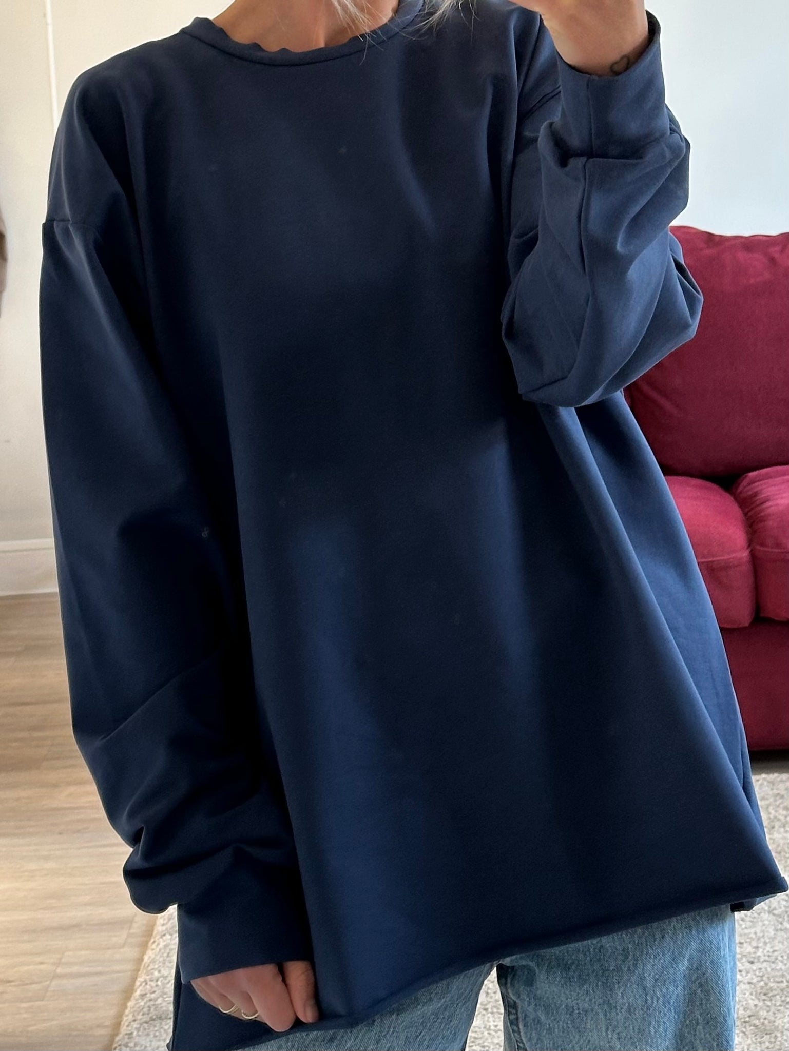 Ruby is een tijdloze longsleeve met extra lange mouwen. De mouwen zijn afgewerkt met een boord. De lengte is gemiddeld en valt (afhankelijk per postuur) net over de billen. De onderkant van de longsleeve is recht en onafgewerkt, dit krult hierdoor iets om wat een stoer effect geeft.