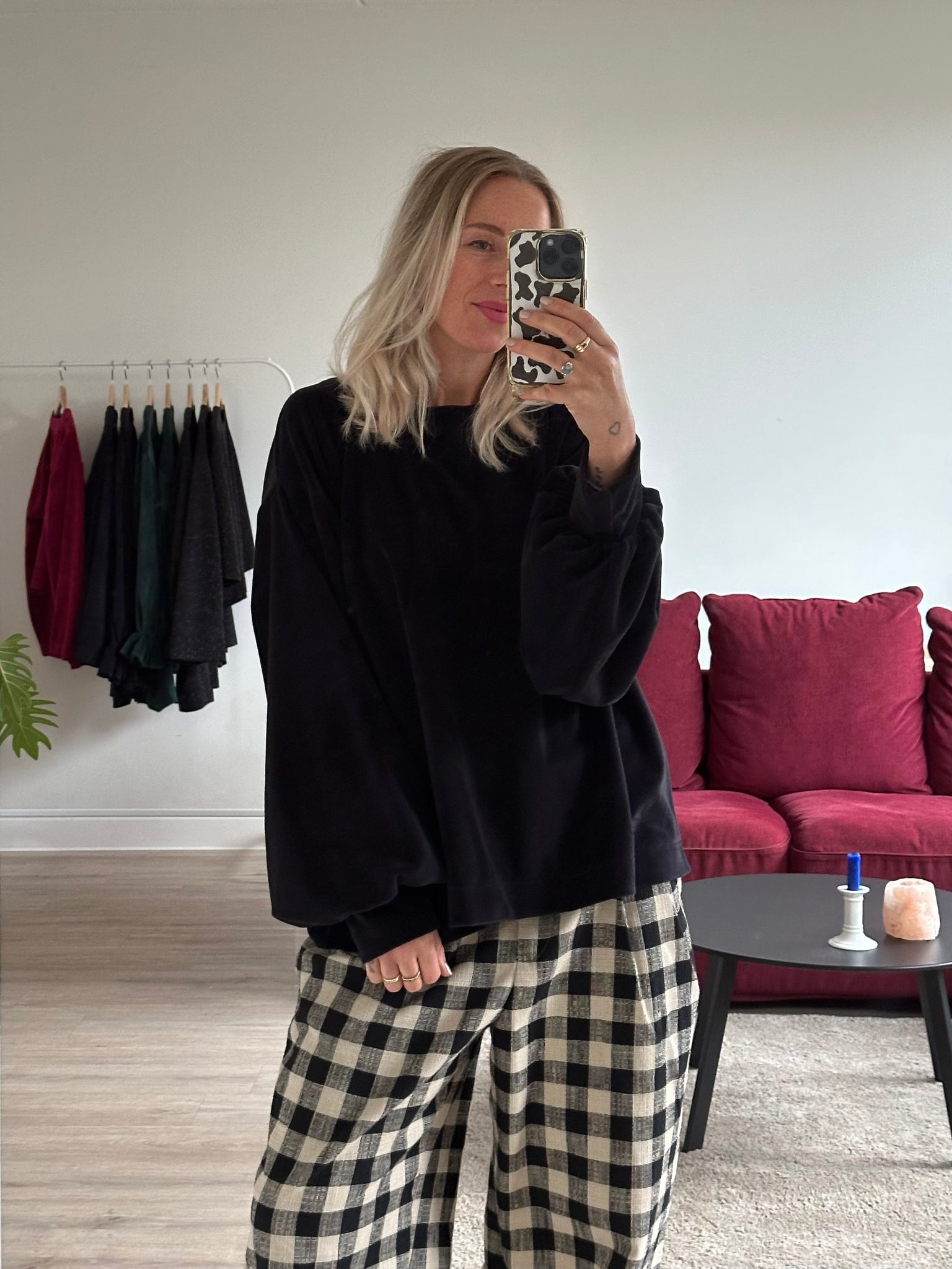 Marley is een kortere sweater met lange wijde mouwen, afgewerkt met een boord. De hals van de sweater is hoog en wat breder, te vergelijken met een boothals. De onderkant is recht en valt ongeveer op de heupen, afhankelijk van je lengte en postuur.